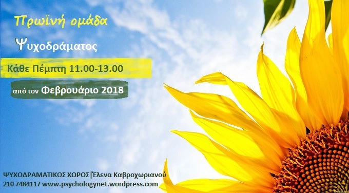 *Για τη συμμετοχή σας σε κάποια βιωματική ομάδα ψυχοδράματος για την χρονιά 2017-2018, επικοινωνήστε στο 2107484117 και έπειτα από μία συνάντηση γνωριμίας στο γραφείο, δηλώνετε τη συμμετοχή σας.