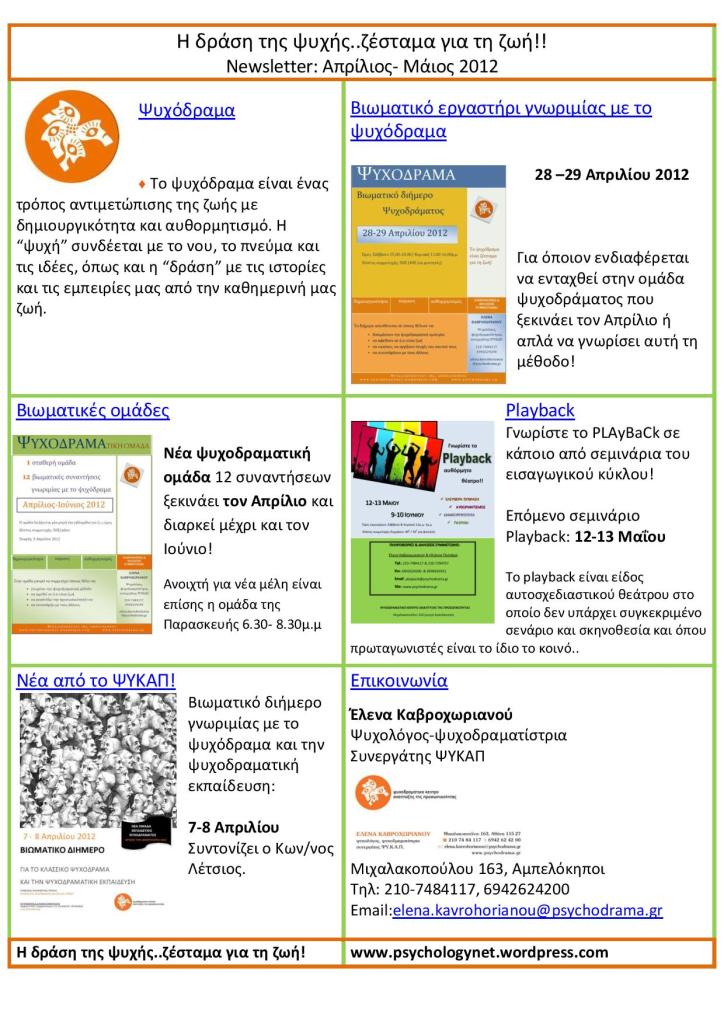 Newsletter-Η δράση της ψυχής..Απρίλιος- Μάιος 2012 Published 10 Απριλίου, 2012 at 1240 × 1754 in Newsletter-Η δράση της ψυχής..Απρίλιος- Μάιος 2012